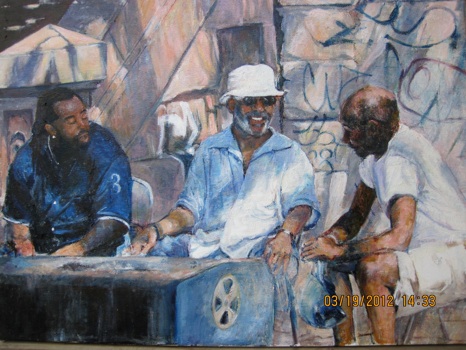 This was a magical moment on a warm summer day during our annual West 120th Street block party. Our neighbors Curtis, Ernest and Walter kept the barbecue fires burning while enjoying tales of life.